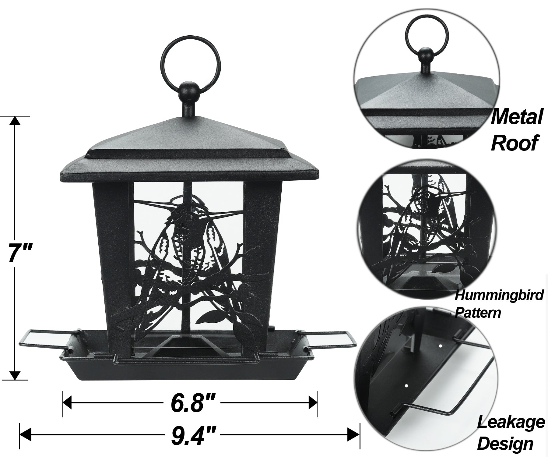 PREMIUM MATERIAL: Birdream bird feeder is made of heavy-duty metal, attractive black design with powder-coated finish, intended to withstand the weather and outdoor elements, not easy to rust or fade. When it rains, the design of the water hole in the bottom tray facilitates the flow of rainwater and keeps the food dry.