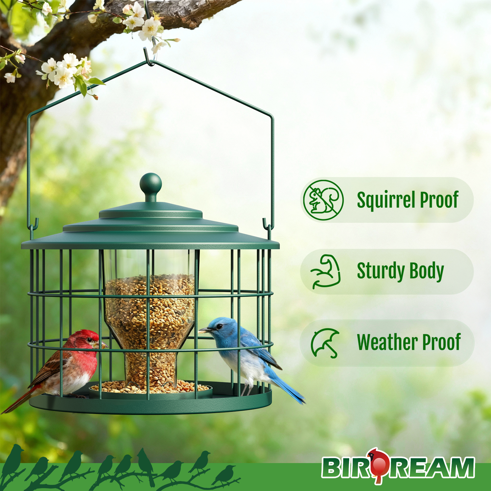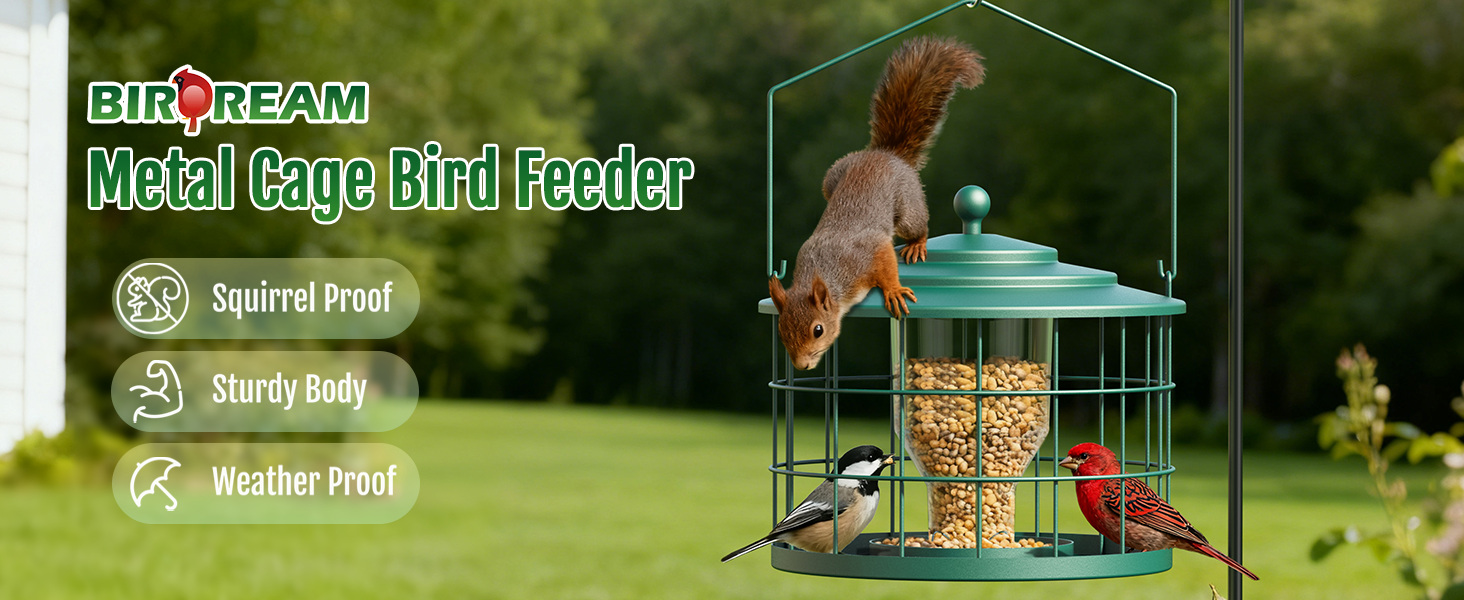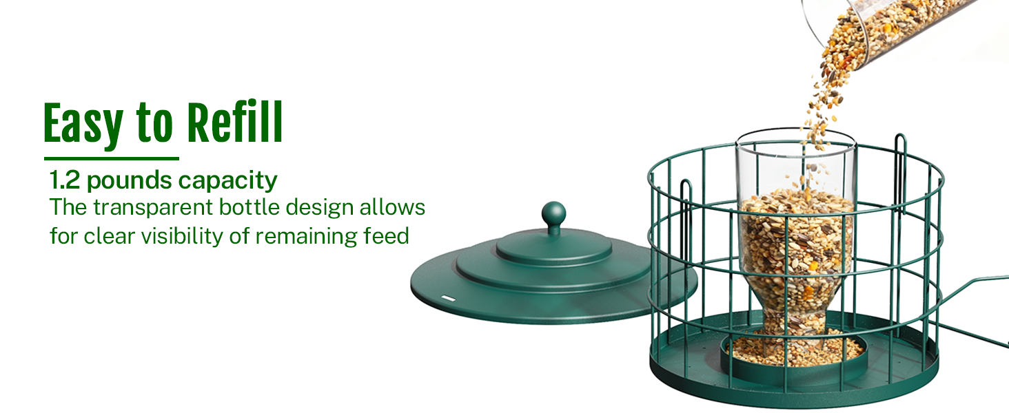- Squirrel Proof Bird Feeder Cage: The protective metal cage helps deter squirrels from easy access to seed while creating a calmer feeding space for small birds
