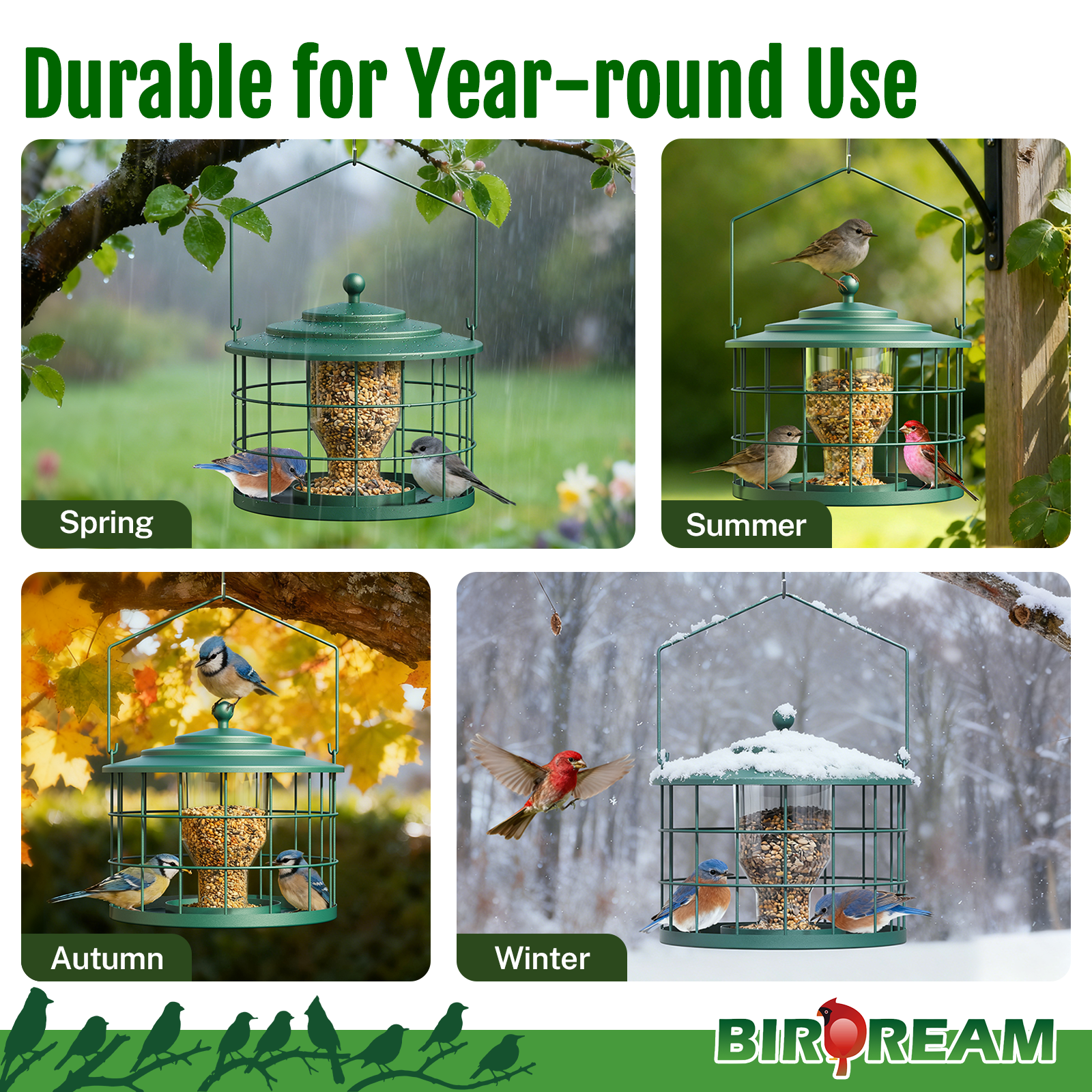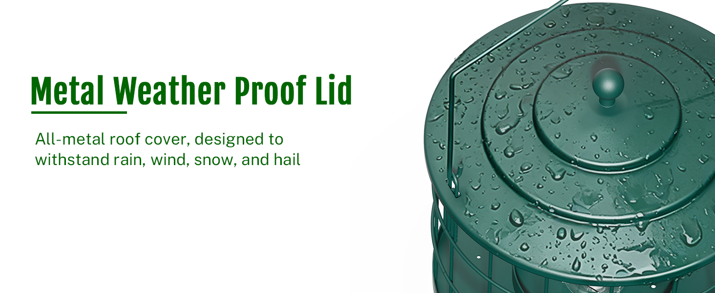- Weatherproof for Outdoors: Covered lid plus drain holes help keep seed drier after rain, making this outdoor bird feeder a cleaner feeding station year-round